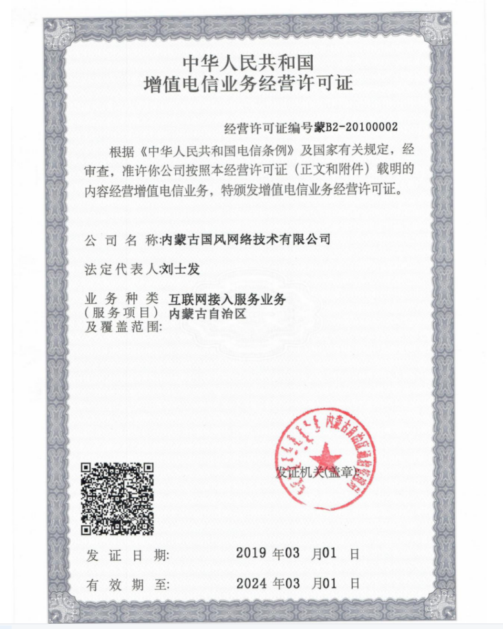 增值電信業(yè)務(wù)許可證蒙B2-20100002